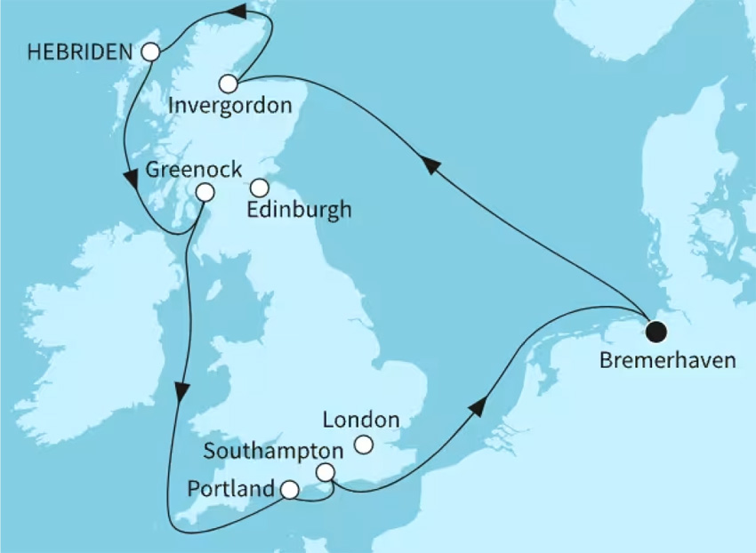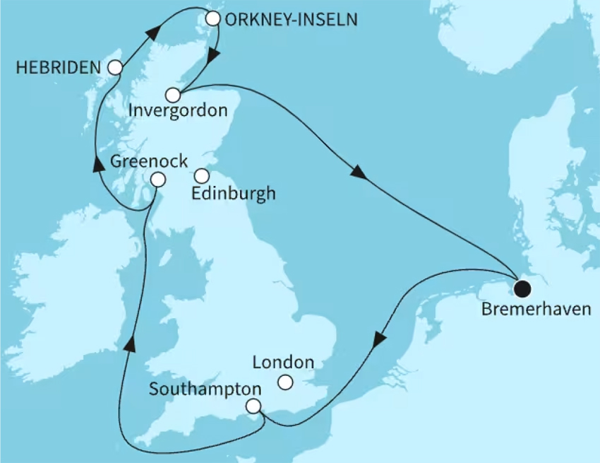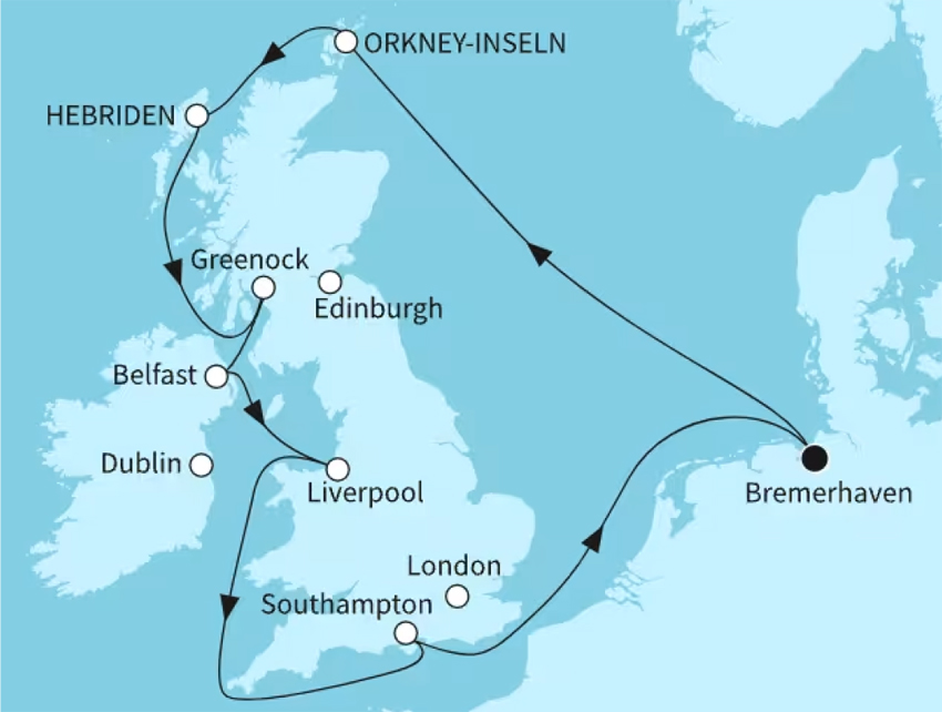 07.05.2027 ~ AIDAsol ~ Grossbritannien und Irland ~ ab/bis Hamburg ~ 9 Tage