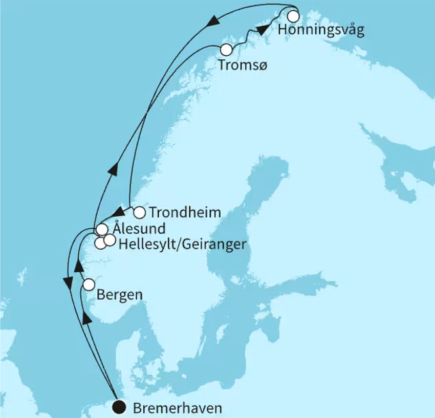11.07.2027 ~ AIDAbella ~ Norwegen mit Lofoten & Nordkap ~ ab/bis Kiel ~ 14 Tage