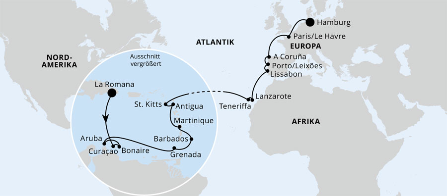 AIDAperla    "Von der Dom. Republik nach Hamburg" vom 13.03. bis 09.04.2025  |  27 Tage