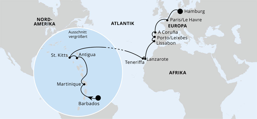 AIDAperla    "Von Barbados nach Hamburg" vom 20.03. bis 09.04.2025  |  20 Tage